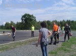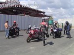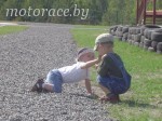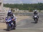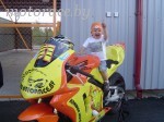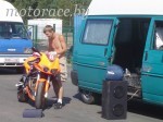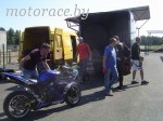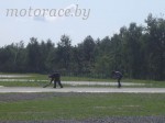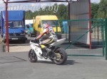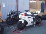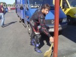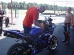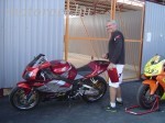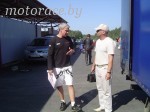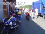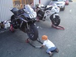 Механики команды подхватывают мотоциклы и ставят на подкаты :)
